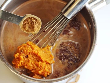 · Especias: ½ cucharadita de canela molida, 1/8 de cucharadita de clavo de olor molido, pizca de nuez moscada y jengibre molido.