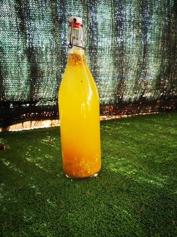 Y aquí viene el secreto puedes añadir agua natural o mitad agua y mitad agua carbonatada o con gas para aumentar su frescor y dar sensación de resfresco. Puedes añadir stevia líquida o en hojas si te gusta más dulce (pero sin abusar), 1 pizca de pimienta si lo deseas (aunque si usas cúrcuma fermentada ya está activada.